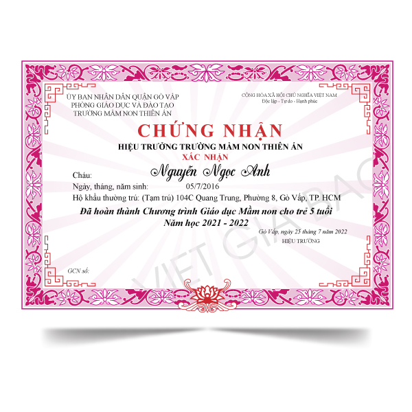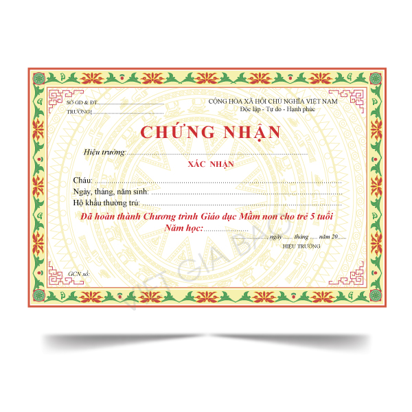In giấy chứng nhận, in giấy xác nhận mầm non