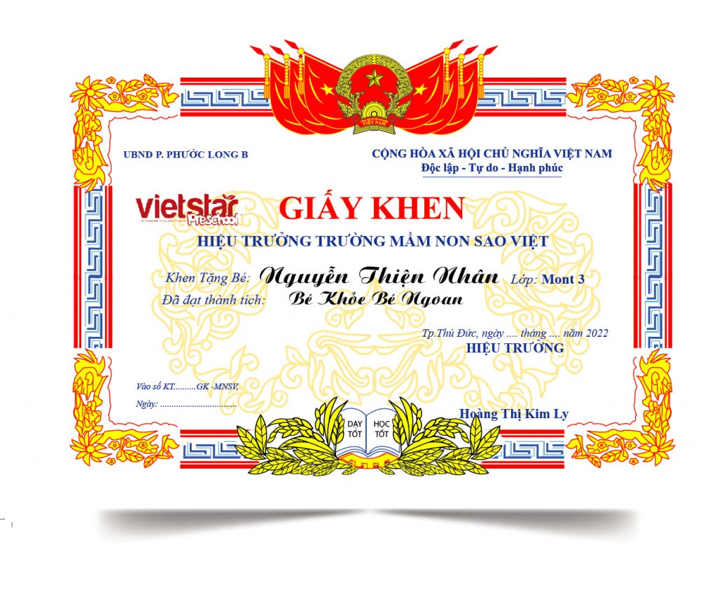 Giấy khen tặng mầm non hay còn gọi là phiếu khen tặng Bé khỏe, Bé ngoan được lập ra để khen thưởng các bé ở độ tuổi mầm non, mẫu giáo ngoan ngoãn tại các trường mầm non. Giấy khen mầm non mẫu giáo sẽ là niềm tự hào của gia đình bé nói chung và cũng là niềm vui của các bé đạt được thành tích, được nhận giấy khen, phiếu khen. Tuy không có giá trị về vật chất nhưng giá trị tinh thần của giấy khen, phiếu khen thì không một vật phẩm nào sánh được. Có rất nhiều mẫu giấy để in giấy khen nên chọn những loại giấy thân thiện với môi trường, thân thiện với sức khỏe, giấy in giấy khen bền đẹp ký đóng dấu không bị lem, chẳn hạn như giấy Fort, giấy kraft, giấy mỹ thuật cao cấp.v.v…